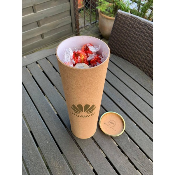 Duża 33 cm TUBA z grawerowanym wieczkiem i bokiem, z zamszu lub z korka. Wieczka i tuby w kilku kolorach.