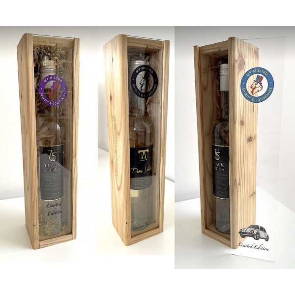 Wódki w skrzynce z szybką z logo Butelka wódka 500 ml