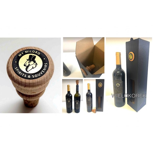 - ZATYCZKA Z KORKIEM I GŁÓWKA DRZEWA BUKOWEGO z LOGO