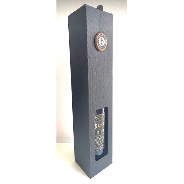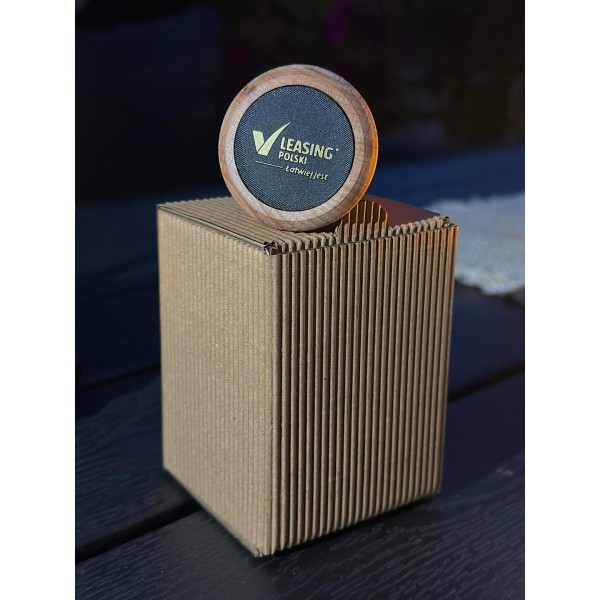 - Kartonik z grubego kartonu z fakturą. elegancki z okienkiem. Logo wsadzona zatyczka z logo