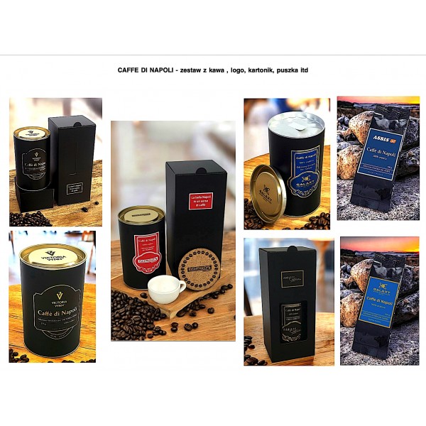 STWORZYLIŚMY zestawy prezentowe z kawą na bazie kawy z włoskiego Neapolu. Reklamowa tzn z logo firmy na etykiecie i opakowaniu. Taka szczególna kawa musi być odpowiednio spakowana aby utrzymywała jakość.